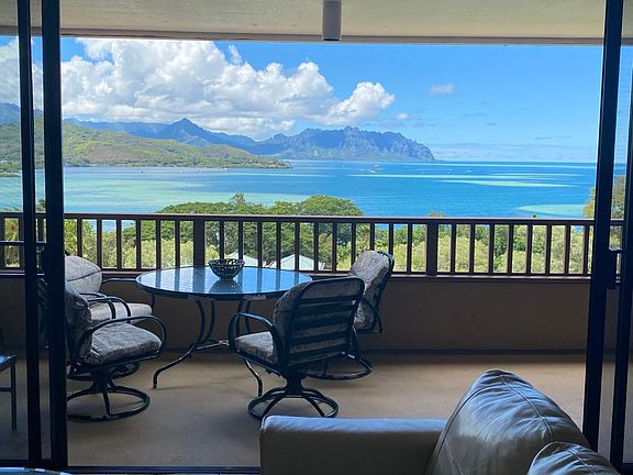 180 DEGREE KANEOHE BAY AND KOOLAU MOUNTAIN VIEW. FULLY FURNISHED/EQUIPPED AND READY FOR MOVE-IN. ENJOY TENNIS AND PICKLEBALL COURTS, THREE SWIMMING POOLS & JACUZZIS, A DRY SAUNA, BBQS AND GAS GRILLS, SECURITY, SECURITY PATHS AROUND THE 56-ACRES, LAWN AND PICNIC AREAS. WORK FROM YOUR LANAI WHILE ENJOYING TRADEWIND BREEZES. PERFECT FOR ENTERTAINING. CLOSE TO ACCESS TO H-3, WINDWARD MALL, FARMER'S MARKETS, MOVIE THEATER, RESTAURANTS. NO STAIRS. ALL ONE LEVEL. COME ENJOY HAWAII AT ITS BEST! LEASE TERMS NEGOTIABLE. FICO SCORE REQUIRED. LONG-TERM LEASE PREFERRED; IF SHORT-TERM THEN TENANT PAYS ACCOMMODATION TAX.