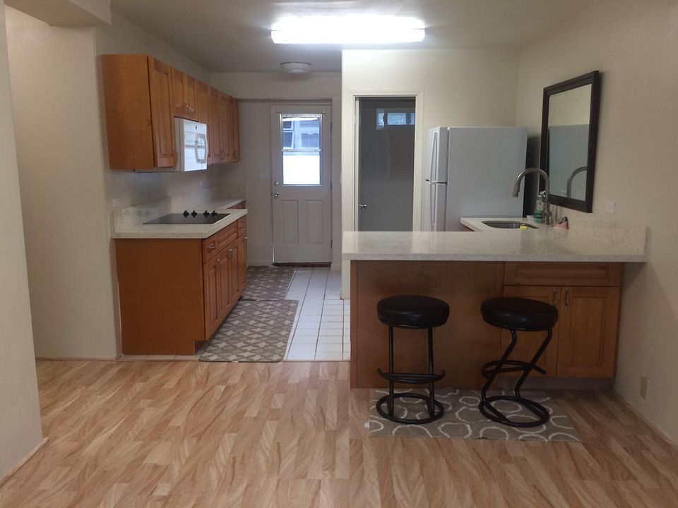 Enjoy this private fully furnished studio located on the Eastside of Oahu. Relax and lounge on your own large outdoor area facing the ocean. *Will accommodate 1 guest at most - Studio - 1 Bed - 1 Bathroom* THE SPACE: In this studio you will have your own private access and exit to the entire space with facing the beautiful Kaneohe Bay and views of the Ko'olau mountains. - Studio with A/C unit - 1 Bathroom with a bathtub and shower fixture - TV - Closet with shelving space - Kitchen is provided with: hot cooktop, pots and pans, utensils, refrigerator/freezer, and microwave and toaster oven. - In kitchen area bar stools are available for seating. - Large sliding door leads to outdoor lounge area AMENITIES: - Outside: includes an outdoor table with shade, chairs, and reclining lounge chairs. - Washer/Dryer is available for use right outside unit - Street parking available UTILITIES INCLUDED: - Electric - Water - Cable - Internet LOCATION: - Walking distance to Windward Mall and Kaneohe Bay Shopping Center - 5 minutes away from Likelike Hwy and the H3 - 10 minutes away from Pali Hwy - 20 minutes away from the Airport *We are able to remove any unwanted furnishings, you are able to upgrade your internet/cable at your own cost* IMPORTANT INFORMATION: - This home is located across the bay from the Kaneohe Marine Base: military planes often fly by this property. Noise from the planes may be an issue for some people. - Studio does NOT come with ocean access - This space is located on the lower level of the landlord's home. There are no shared common areas between the units with a fully separated entrance/exit for security and privacy. 6 month lease, with $1,750 deposit Available DEC 1st 2021 This all inclusive rental-price includes: TAX and UTILITIES.