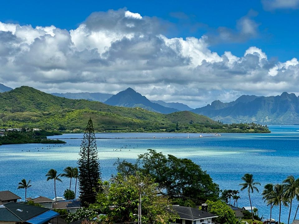 180-degree Kaneohe Bay view from this large single-level townhouse in the kitchen, living room, dining room, and primary bedroom. Nestled in the tropical setting, this renovated three-bedroom, two-bath townhouse is the largest floorplan at Poha Kea Point. Among the 56 acres of well-maintained and beautiful landscaping are paths to three swimming pools with jacuzzis, a dry sauna, tennis and pickleball courts, and 24-hour security. The owner pays for the amenities, water, 500 Mbps secured wi-fi, and basic cable and streaming box. The tenant only pays for electricity. Contact 808 Home Rentals LLC to join the rental tour and make this your new Hawaii home! Renter pays for electricity.