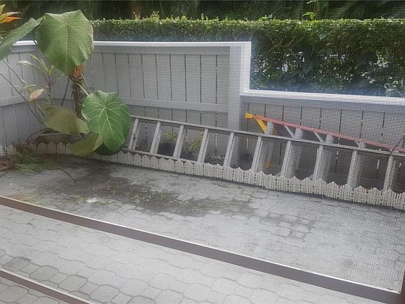Corner,ground 2/1 with laminate flr, 2 unit A/Cs, 3 ceil fans, new stove/hood/full sized washer,newer refrig & dryer.Private courtyard to entertain and enjoy beautiful Koolau views. Easy access to WW mall, schools. .