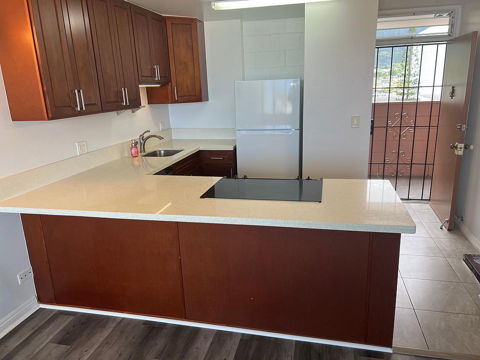 Two bedroom on bath condo. Freshly painted with all new appliances and flooring. One parking stall. Central fire alarm. Tennis court. Barbecue area. Security entrance to building. Guest parking. Appliances include new in unit washer/dryer and dishwasher. Bus stop in front of building. Within short distance to major Kaneohe town shopping, medical facilities and schools. No smoking or pets allowed. Landlord responsible for water, electricity, and basic cable. Tenant to reimburse landlord for cost of keys lost.
