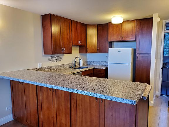 This 2 bedroom/1 bath is on the 6th floor of Hale Anaole A, giving the tenants a nice view of the bay from the living room window. The kitchen was recently redone to give a more open layout with the living room. There is hard wood flooring throughout the apartment. There is a washer/dryer unit in the apartment. This is a secure building with on-site resident manager. Tennis courts and a small playground are on the premises. 1 reserved parking stall & guest parking on property. Message to set up a viewing. Viewings available both in person and via Zoom. Looking for at least 1 year lease. All utilities are included in rent (electricity, water, trash) plus cable, wifi 1 reserved parking stall included. No smoking in unit.