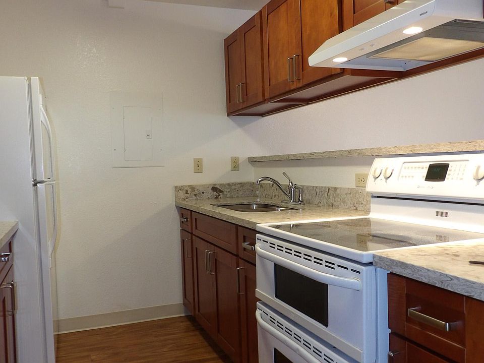 Spacious corner unit on the second floor. New flooring in living/dining, hallway kitchen and baths, new cherry kitchen and bath cabinets, new quartz counter tops in kitchen and baths. Full sized washer/dryer in the apartment. Extra storage locker in the covered garage area, 2 assigned covered parking spaces/stalls. Easy access to H-3, Marine base, downtown Honolulu, or the other various military bases on the island. No smoking/no pets for this unit. 1 year lease, renewable in 1 year increments. Credit check fee of $30 per adult applicant