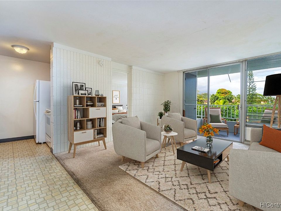 $7k flooring CREDIT to buyer, perfect to get you started on your remodel. 3 bedroom 2 bath Haiku Hale condo is ready for a new owner! Large primary bedroom fits a king sized bed easily. Ceiling to floor sliding door & windows in primary and living room each to its own balcony. Full size washer/dryer in unit. Amenities heated pool, exercise room, playground and tropical garden. Low maintenance fees and pet friendly building. Located in a central area of Kaneohe, close to schools, park, shopping, WCC, bus line, restaurant post office and Windward mall. Some photos have been virtually staged.