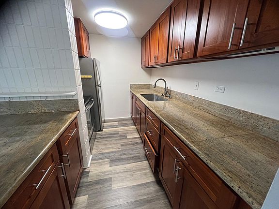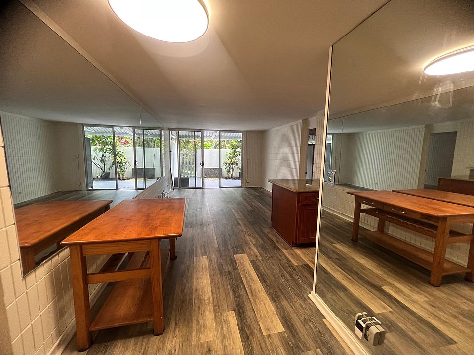 Nicely maintained ground floor unit, recently painted, tastefully renovated in 2019/2020 with earthy grey/brown wood-like laminate in living, dining, & bathroom and carpet in bedrooms. Gourmet kitchen with speckled natural granite countertops and real wood cabinets, stainless steel appliances. Indoor side by side washer/dryer. Fenced private courtyard with access to gate leading out to grassy, woodsy area, and slope to Kea'ahala stream. Building has large heated pool, fenced keiki play area, bike/surf storage, meeting/party room on penthouse floor with open area rooftop with fabulous mountain/coastline views, spacious workout room with gym equipment. 1 reserved parking stall, plus non-metered street parking. Closely located to Kaneohe town (the mall, restaurants, and grocery stores). Minutes away from onramp to the Likelike & H3, 20-30min to town and most bases. Water/sewer/cable/internet/trash comes with unit. GET electricity, phone LAN line to be paid by tenant. Pet possible with owner approval. 1 year lease term, fee applies if broken. Property manager will do bi-annual checks on the apartment via appointment with tenant. Late fee applies on rent paid past due date. No smoking allowed inside unit OR on lanai (anywhere where smoke can travel into other units). One reserved parking stall comes with unit. Water/sewage/cable/internet/trash included with unit. GET, electricity, phone LAN line to be paid by tenant. Pet possible with owner approval and pet deposit.