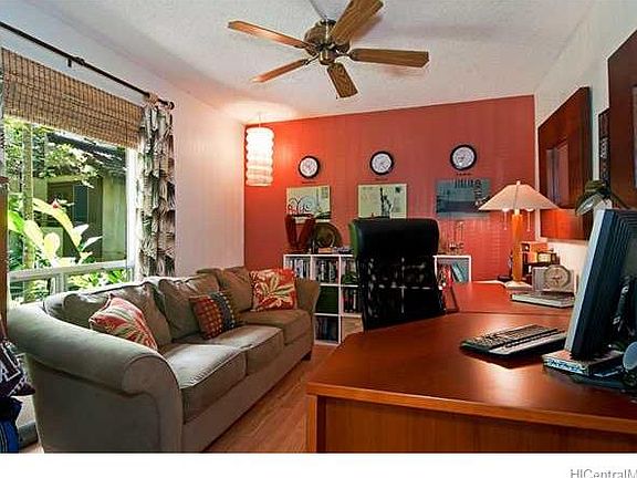 Newer upgrades in the kitchen and bathrooms, featuring a walk-in pantry the kitchen is oversized room enough for a large table, a bonus den/office downstairs, with fun tropical decor, large downstairs lanai great for extended entertaining. Delightful setting in lush Haiku Gardens, a place to call home. Home Warranty included.