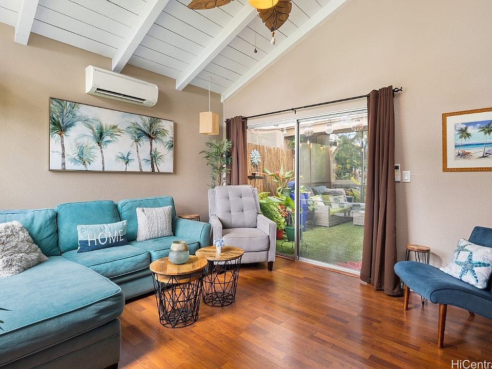 This spacious 1,539 sq ft home has been lovingly cared for and upgraded throughout the years. The sizable and tastefully designed kitchen with elegant Quartz countertops will make your meal preps easy and enjoyable. The dining area provides ample space for gatherings and entertainment, and the roomy lanai can be accessed from both the dining and living room, which makes for a nice balance between indoor and outdoor living. The large primary bedroom has its own lanai where you can unwind after a hard day’s work...and the walk in closet was designed to keep you organized. The vaulted ceiling in the living room creates an open and airy ambiance, plus each room has a split AC, ensuring comfort and coolness. There are plenty of cleverly designed spaces to keep your belongings organized and out of sight. Beyond the comforts of this lovely home, the location is an absolute gem. You will enjoy the picturesque and tranquil views of the majestic Ko'olau Mountains. Windward Mall with the new Target is minutes away, and commuting will be a breeze as you are conveniently close to freeway on-ramps. Did I mention the maintenance fees are very reasonable, and the popcorn ceiling was removed?