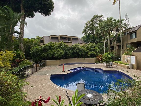 Nestled at the foothills of the Ko'olaus, wrapped in lush rainforest, your new home at Eden Haiku Woods awaits you! Enjoy the scenic landscaping, resort-like architecture, and sounds of nature as you approach the front porch mere steps to the pool and hot tub. This 2 bedroom, 2.5 bath is a soothing jungle retreat for anyone looking to unwind! The vaulted ceilings, cozy nooks, cool fresh air, and private lanais of this townhouse will bring you instant zen and relaxation. Across the street from Haleiwa Joes, walking distance to Kaneohe District Park (public pool, fields, and courts), 3 minute drive to major shopping center (mall, grocery, restaurant, hardware, etc.), 20 minutes to Pearl Harbor, 15 minutes to Kaneohe Marine Base, 20 minutes to Downtown Honolulu, 18 minutes to the Airport. Property: pool, hot tub, saunas, luscious landscaping, 2 parking stalls (one covered) and ample guest parking Storage: small closet in garage, large closet on back lanai, large entry hallway closet, and linen closet Includes trash, water, sewer and amenities. Can include internet and electric for another $200/month.