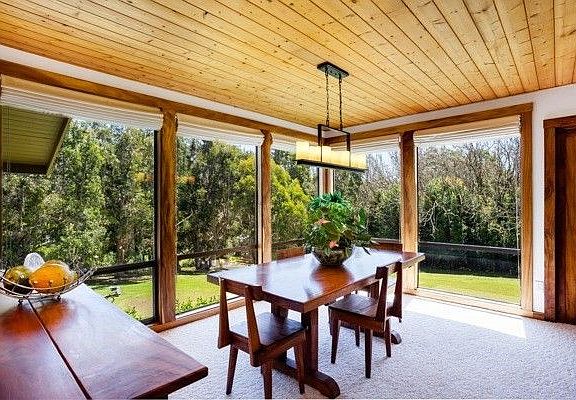This custom built Ahualoa property has a gated entry with tree lined driveway making it a private, estate like setting. The interior is spacious and light with well placed windows and an open floor plan. Extensive use of Koa brings in a unique Hawaiiana feeling that extends into the landscaping with mature native ohia trees. In addition there is a four car garage with extra space for a shop or hobby room.