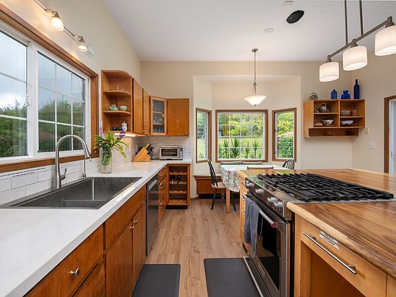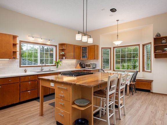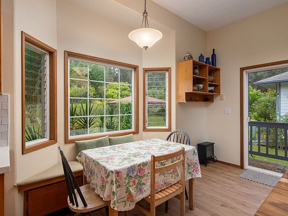 Designed for comfort and connection to the land, this home features a large bright kitchen with a walk in pantry, a cozy wood-burning stove, and generous common areas—ideal for gathering, relaxing, or working remotely in a peaceful, green setting. Double living rooms with windows on 3 sides with direct access to the large lanai and courtyard, with a ramp for ease of access means multigenerational living could be easy here.