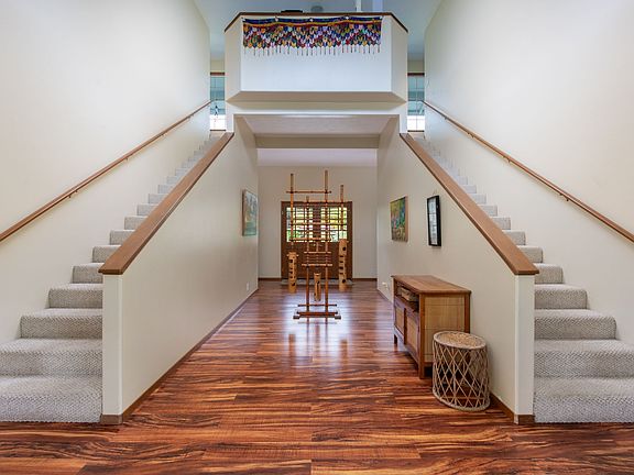 Welcome to your private country retreat in the heart of Ahualoa, where natural beauty, self-sufficiency, and expansive living come together on 6.57 acres of fertile Big Island land. This 5-bedroom, 3-bathroom (plus two half baths) estate offers 3,781 square feet of well-designed living space, perfectly situated between Waimea and Honoka‘a for easy access to town amenities and upcountry charm. There is a calmness from the moment you enter the gates and drive the gardenia-edged circular drive through the covered porte-cochere.