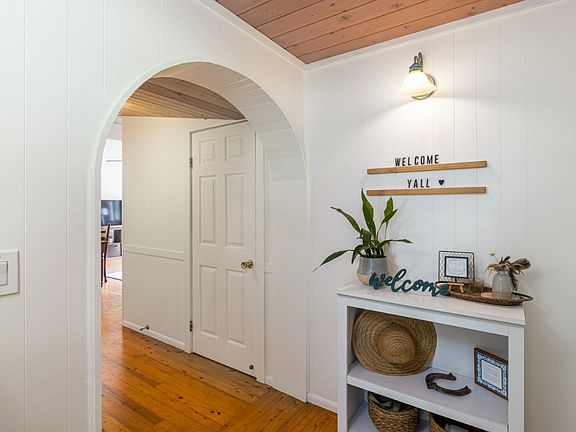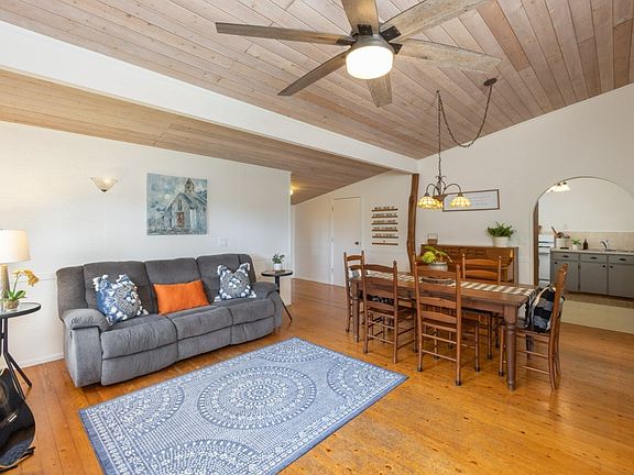 A variety of skylights. windows and exits provide ample natural light and clean air. Off of the central living area is access to an adorable enclosed laundry room, a cozy kitchen through an arched entryway, and french doors that open up to the outside lanai which spans across the back of the home. A hallway is found at the back-end of the kitchen that leads to the second master suite with an ample walk-in closet, en-suite bathroom, wood burning stove, and glass sliding doors to the lanai. Additionally, from this south end master suite, you will find a large storage closet and another multifunctional bonus room!