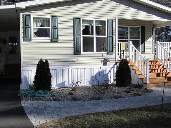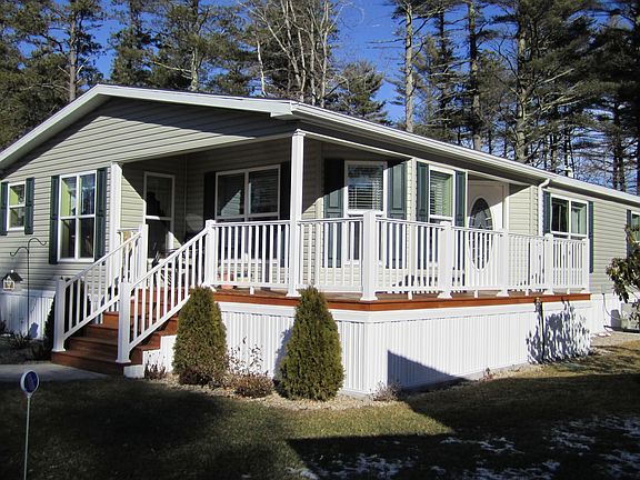 This nearly new home is a "crown jewel" in a beautiful over-55 resident-owned community, South Meadow Village. This lovely 3 bedroom/ 2 bath home is spacious (1708 square feet) and filled with upgrades. The roomy kitchen has ample cherry cabinets with Corian countertops, a center island, an undermounted double sink, and "top-of the line" appliances just to mention a few of the features. The bright and sunny living room abuts the 11x14 ft Dining Room. The three main rooms, LR/DR/Kitchen all flow together nicely. The master bedroom measures 12x13 and boasts a very large walk-in closet and a ceiling fan. There is a second bedroom measuring 10x11 opening off the hallway and a den or a third bedroom (12x12) that opens off of the living room. The master bathroom is ensuite with the master bedroom and has a garden tub and a walk-in shower with double seats. Both bathrooms have comfort height toilets. A solar tube in the main bathroom illuminates that area. Some other notable features are a wrap-around porch (4x21 + 5x18), a wooded back lot, a 10x12 shed, a 13x16 carpeted sunroom, and a whole house generator. This home is a "must see"; come and make it your own.