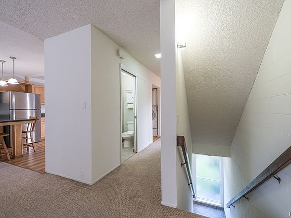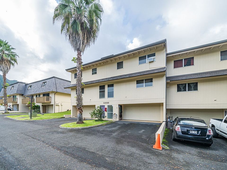 This 1344 sq ft 3 bedroom 2.5 bath townhome sits in a quiet neighborhood along the Koolau mountain range. The recently renovated interior features split AC on main floor, window AC for each bedroom, and master bedroom walk-in closet. Modern open concept kitchen has granite countertops, new vinyl plank flooring, breakfast bar, and stainless appliances. Front-load washer/dryer are tucked off kitchen for convenience. Sit out on the private 384 sq ft back patio off the living room with private gate access to Haiku Rd. The private two-car garage has two tandem parking in the driveway. Multiple guest parking stalls throughout development and lots of street parking.