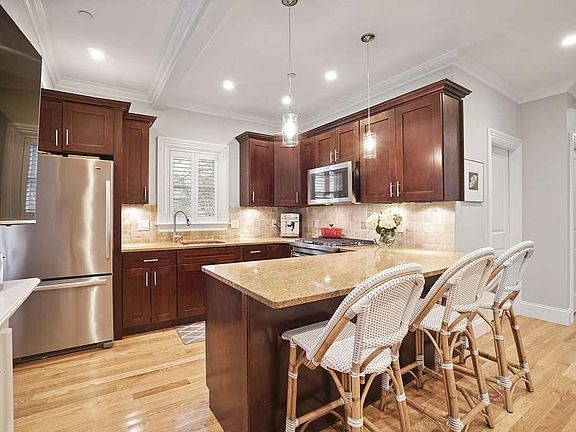 Thoughtfully renovated 3 bed, 2 full bath duplex on one of South Boston's most sought after streets. The building was renovated in 2008 and the owners have made additional improvements during their ownership. The open concept first floor offers three exposures allowing for an abundance of natural light. The kitchen features custom cabinetry, newer stainless appliances, stone countertops + a large breakfast bar overlooking your living and dining areas. On this level, you'll also find the first of three bedrooms and a new full bath with tile surround and jacuzzi tub. Downstairs are two additional bedrooms including a very spacious master bedroom w/a wall of custom cabinetry. The second full bathroom was updated w/new floor tile, a beautiful marble topped double vanity and a walk-in shower with glass surround. This home also comes with one assigned parking space directly behind the building, central air, a gas FP and in-unit laundry! Flexile move in!!