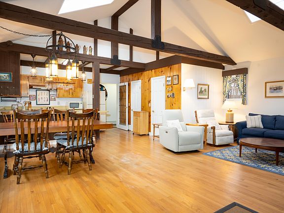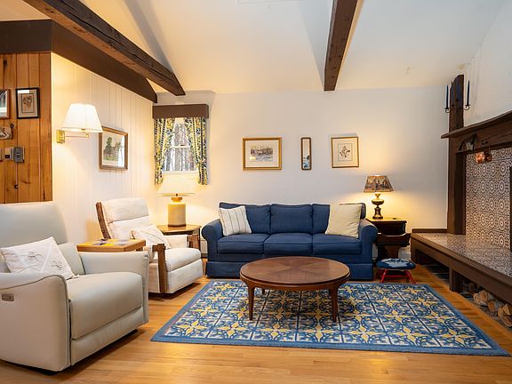 Escape to a charming two-bedroom adorable chalet where function meets tranquility. The living room is enhanced by exposed beams and skylights that welcome abundant natural light. The traditional fireplace adorned with decorative tile invites cozy conversation on snow filled nights.  The This home features 1.75 baths, a dedicated laundry room, and a versatile flex space ready to be your home office or enviable workshop. The outdoor wood burning fireplace enhances apres ski adventures and al fresco dining.  All this nestled on two sprawling mountain acres graced by the peace and charm of a natural spring.