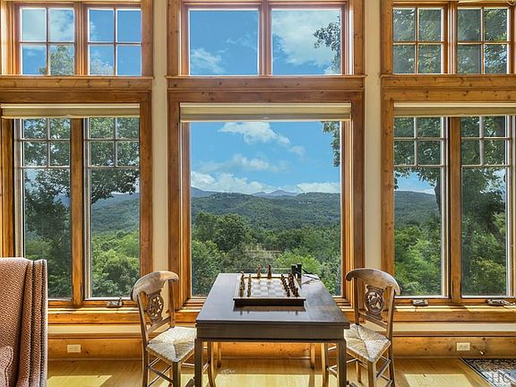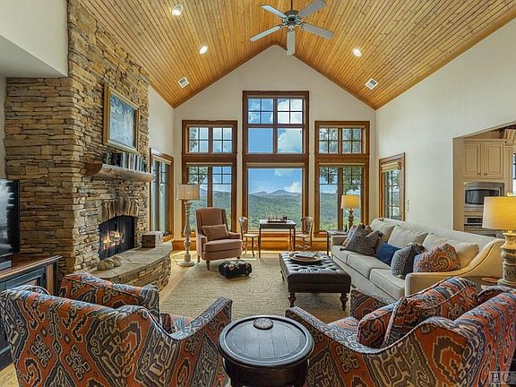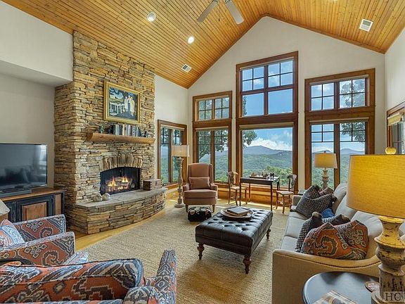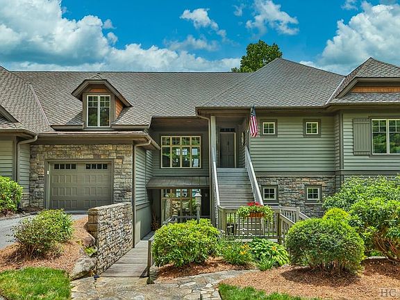 Skyview Trail says it all with magnificent long range, big sky views. Watch the moon rise and shooting stars through the giant picture windows in the living areas and primary bedroom. The fall changing of the leaves and winter snowfall are equally breathtaking. A large outdoor living space beckons family time with both covered and uncovered areas, grill and dining space and a fireplace for cozy evenings. Experience true lock and leave convenience with this finely constructed top floor townhome. From the garage there are only 9 steps to the main floor. This stunning residence clad in beautiful stone and board and batten siding contains real hardwood flooring throughout, no carpeting! The magnificent great room is an entertainer's dream. There are 3 large bedroom suites and a fourth sleeping/office area. The owners have recently installed new appliances: refrigerator, dishwasher, disposal and clothes washing machine. Located in Trillium Links and Lake Club, the gorgeous landscaping and roads are kept pristine by the POA. The club, should you choose to join, is one of the few with a private marina on Lake Glenville. You may contact Stetson Taylor 828-743-6161 for membership information.