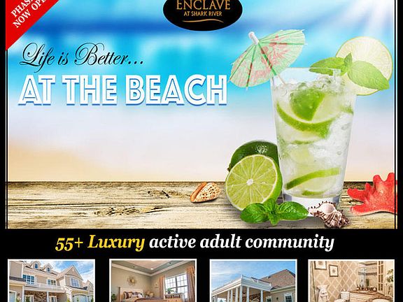 Enclave @ Shark River is a private community for 55 and better seeking an engaging, upscale and maintenance free lifestyle. Featuring 44 new luxury townhomes, open floor plans, two-story entry foyers, stainless steel appliances and two car garages. Home prices starting at $449,000, with 2,700 to 2,900 square feet each and nine foot ceilings. Luxury and sophistication nestled in a secluded private setting. Homeowners can enjoy the amenities suited for social gatherings; a clubhouse with billiards and fitness, an outdoor cabana and swimming pool, bocci court, fire pit and outdoor barbeque...**$20,000 of incentive upgrades being offered to buyers**