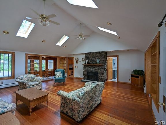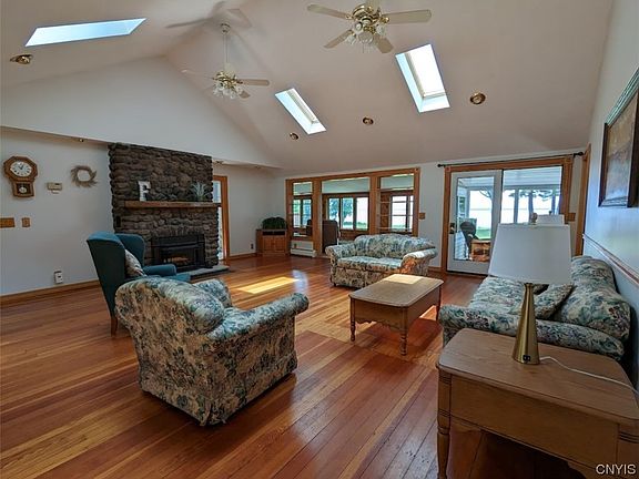 North Shore Oneida Lake front...4.5+Acres, 2500+ Sq.ft Custom Ranch. This is truly one of a kind!! Great room has Cathedral ceiling, stone fireplace, Hardwood floors, Room for large Gatherings. Enjoy the Master Suite, Full bath, 2 large walk-in closets, walks out to wraparound deck, overlooking gorgeous yard, koi Pond and Lake.... Thats a view! Finished walkout basement, perfect for game room, guest Bedroom, work out room and more. Natural shoreline, sandy bottom swim area, Bring your boat, water toys or just Enjoy the quiet.