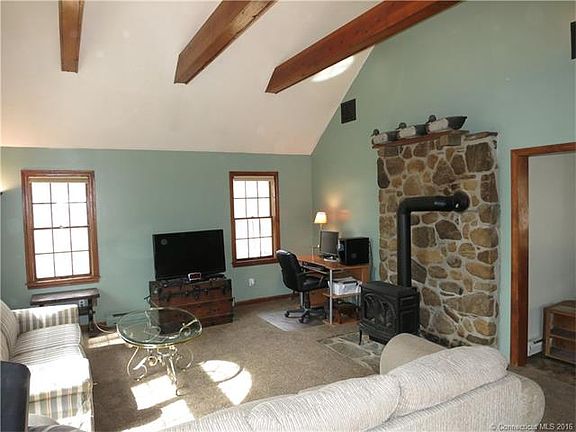 Large 3 bed 2 1/2 bath Colonial with oversized 2 car attached garage on 4 plus acres. Huge Master Bedroom and great room with vaulted ceilings and vented stove insert set on a beautiful stone setting. Formal living room also has stand alone stove. Kitchen has island and is large enough to eat in. Great room and kitchen have access to the huge deck overlooking the spacious back yard. Basement is walkout and has two flus ready for your stove inserts.