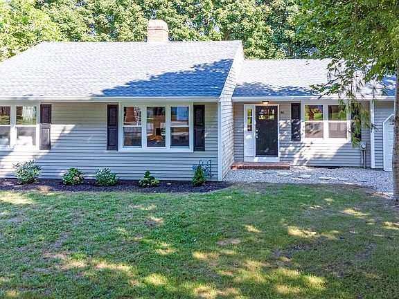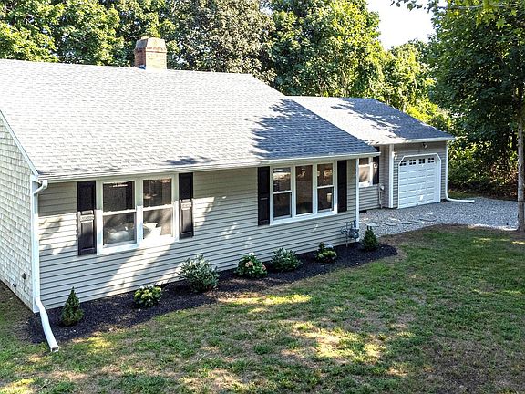 WOW!! Fantastic turnkey Ranch Home desirable neighborhood. Less than 3/10th a mile to Falmouth Harbor and Surf Drive Beach under a mile! Walk in the front door and be greeted with beautiful driftwood stained hardwood floors and loads of natural light. Cozy up next to the fireplace in the open living, dining, and kitchen areas. The new kitchen offers beautiful quartz countertops, new SS appliances, farmer's sink, and large island with wine cooler. There is a generously sized primary bedroom suite has 2 closets, an ensuite 3/4 bath. There are two more bedrooms with fresh paint and brand new carpet and plenty of closet space. There is a full bath with new flooring, shower, tub, and double floating vanity. Don't miss the beautiful office space off of the kitchen! The basement is very large with lots of storage space. There is plenty of off street parking as well as an attached garage. This home has a new Navien natural gas heating system, all new windows and a new roof. Large yard perfect for family fun. Your Cape Cod home awaits you!