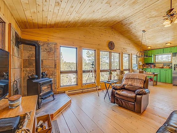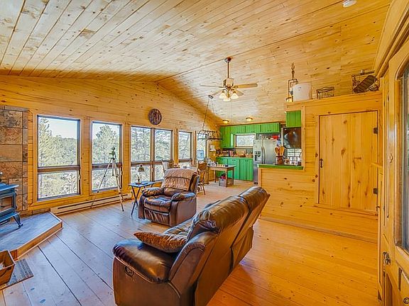 INVITING LOG SIDED HOME BEAUIFULLY SET IN THE PONDERROSA PINES! PEACEFUL LIVING WITH THIS FEATURE LOADED PROPERTY STARTING WITH THE 3 BEDROOM, 2 BATH HOME WITH BEAUTIFUL PINE FLOORS AND ASPEN WALLS AND CEILINGS. LARGE LIVING AREAS INCLUDE LIVING ROOM WITH WARMING WOODSTOVE AND A LARGE LOWER LEVEL FAMILYROOM WITH PELLET STOVE TO OFFER THAT PERFECT COUNTRY FEEL, THE LARGE WINDOWS IN THE HOME ALLOW FOR WONDERFUL VIEWS OF THIS QUIET MOUNTAIN SETTING AND THE ABUNDANT BIRDS AND WILDLIFE. CLASIC COUNTRY KITCHEN WITH TILE COUNTER TOPS AND LARGE BAY SINK, 30 FOOT COVERED WOOD DECK, SPACIOUS BEDROOMS AND BEAUTIFULLY UPDATED BATHROOMS. OUTSIDE THE FEATURES CONTINUE WITH A CHARMING 14 X 16 GUEST STUDIO/CABIN, 24 X 30 GARAGE WITH WORKSHOP AND 10 X 24 STORAGE LOFT, LARGE GREENHOUSE/LOAFING SHED, CHICKEN COOP, CONCRETE RV PAD AND THE LOT IS EVEN FULLY FENCED TO KEEP THOSE FRIENDLY DOGS AT HOME! 2.3 ACRE TREE COVERED LOT WITH GOOD ROAD ACCESS, HIGHSPEED MICROWAVE INTERNET ACCESS AND CELLULAR SERVICE. NICE PROPERTY & NICE HOME! COME TAKE A LOOK.....
