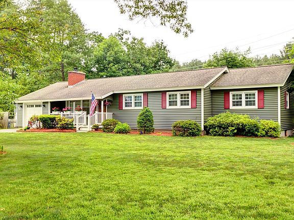 Enjoy privacy & convenience in this stunning 4 bed, 2 bath home w/ attached 1 car garage, nestled in a closed loop neighborhood. This versatile single-level ranch features semi-open concept floor plan w/ hardwood floors. Enjoy a spacious, light-filled front living room w/ bay window & cozy gas fireplace. Kitchen boasts gas cooking & beautiful granite countertops, seamlessly connecting to a charming dining room—ideal for gatherings. Main bedroom suite offers privacy w/ 3/4 bath & generous walk-in closet. 3 additional good size beds w/ plenty of closet space. Finished basement adds extra space w/ a family room, playroom, laundry, workshop, & storage. Enjoy year-round comfort w/ gas baseboard heating & central air. Step outside to the 3-season porch or entertain on the large deck, perfect for summer grilling. Professionally landscaped yard features an irrigation system & large shed for easy maintenance. Quick access to Rt 3 & 495, Russell Mill Conservation Trails & South Row Playground.