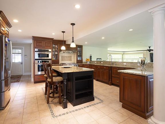 • Kit Dscrp: Countertops - Stone/Granite/Solid, Flooring - Stone/Ceramic Tile, Kitchen Island, Recessed Lighting, Gas Stove, Lighting - Pendant
