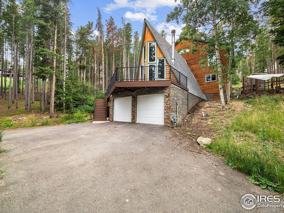 Nestled among the pines on a full acre in the serene Brook Forest Estates, this beautifully updated 3-bedroom, 4-bath A-frame home offers the perfect blend of mountain tranquility and modern convenience. With over 2,600 square feet of finished living space, you'll find comfort, character, and room to grow. Inside, the tri-level layout showcases soaring ceilings, warm wood finishes, and natural light throughout. The main level boasts a cozy family room with a wood-burning fireplace, a spacious kitchen with an island and pantry, and a versatile bedroom currently used as a home office. Upstairs, two generous bedrooms each offer private full bathrooms, walk-in closets, and serene forest views. Thoughtfully appointed, this home includes radiant heating, high-speed StarLink internet that will be included in the sale, and a host of upgrades including double ovens, stainless appliances, and an EV charging-ready garage. Additional highlights include a private deck, a laundry room, and a partial basement for added storage or potential flex space. Outside, enjoy peaceful mornings on your balcony or host gatherings on the expansive deck. The one-acre sloped lot provides privacy, wildlife sightings, and access to everything Evergreen has to offer - from hiking trails to charming local shops. With no HOA, low taxes, and eligibility for FHA, VA, and conventional financing, this property offers unbeatable value at $685,000!!! Whether you're looking for a full-time residence, a work-from-home retreat, or a mountain getaway, 46 Apache Road is ready to welcome you home.
