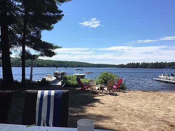 Updated 4 bedroom, 2 bath home on a level lot with sandy access to Little Sebago great for swimming and boating. Common ROWs, tennis courts and boat launch, etc. included with association. Features of this home include a sun-drenched kitchen with eat-in island, large living/dining area with cathedral ceilings and fireplace, and extra family room in the daylight basement.
