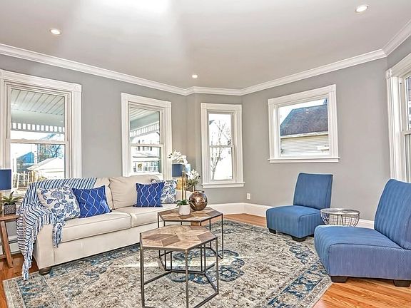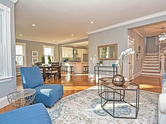 Wow! This gorgeous renovated home featuring new windows, new roof, new wiring, new gas heating, new plumbing, new oak hardwood floors, new carpet, and more! Entering the home you are greeted by soaring 10 foot+ ceilings, gleaming oak flooring, beautiful crown molding, and restored period details. First floor has an open concept living room, dining room, and kitchen. The chef's kitchen boasts upgraded white maple shaker cabinets, brand new appliances, built in microwave, glass tile back splash, and quartz counters, completed with a peninsula! Kitchen has additional pantry storage, wine rack and updated half bath. 1st floor bedroom completes the main level. The 2nd floor has a generous landing leading to a beautifully renovated full bath with laundry, total 3 bedrooms, with your very own master suite, that offers walk-in closet and a spa like bathroom with double vanity and glass enclosed shower. 3rd floor has 2 more bedrooms, fully updated bath, and a bonus room and access to storage.