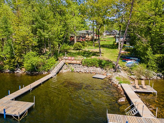 Stunning property with a magnificent view of Long Pond and neighboring mountains. Previously known as the former ''Manor House'', this cleverly designed Scandinavian-style home has been totally updated for enjoyable entertaining and living space. The first floor primary bedroom is spacious with a spa-style bathroom. All new interior with exposed wood ceilings and beams. New flooring & windows throughout . The downstairs has exposed granite walls, a gardening room, along with a workshop, and bonus room for a ping-pong or a pool table. This also could be used as a wonderful office. The 2nd floor has two more bedrooms and a new spa-style bath. A screened in porch is the perfect place to have a morning coffee or an evening meal. Great fishing, boating and swimming. Stroll to the village to enjoy a concert on the Village Green, the local Farmer's Market or an old fashioned ice cream cone! Award winning Golf Club minutes away, At least 7 ski mountains within an hour and a half of driving, Sugarloaf is only one hour away. Convenient to Augusta, Waterville and Farmington. This is a fantastic property!!