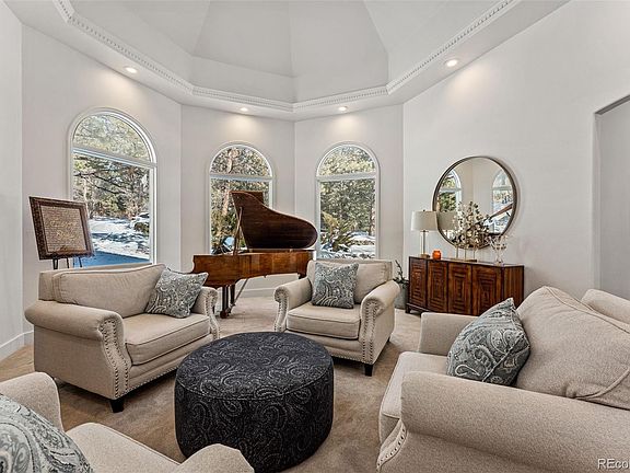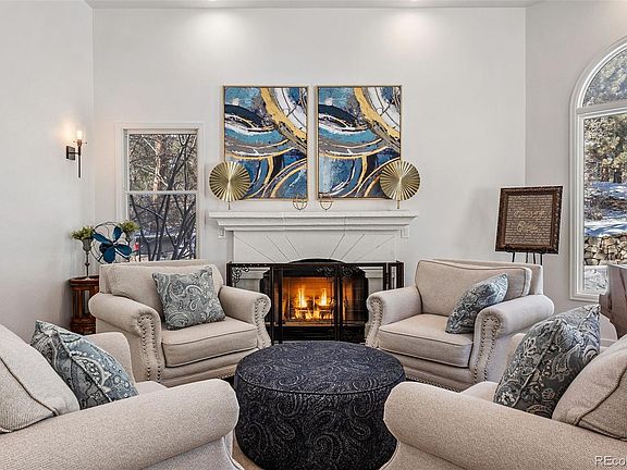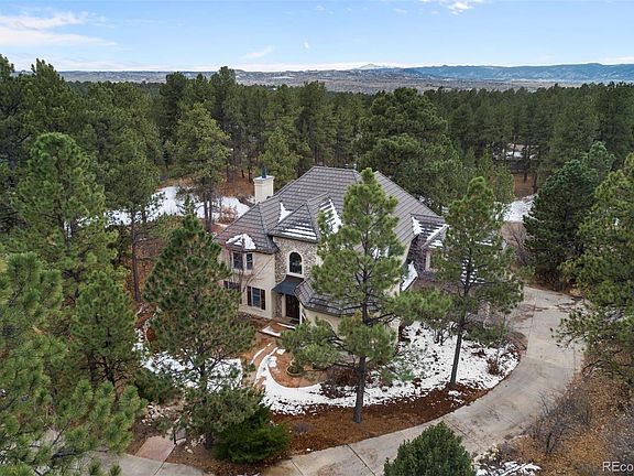 MOTIVATED SELLERS! BACK ON THE MARKET! Buyers couldn’t get their house under contract. We are through Inspection and the house appraised at full price. . Phenomenal Location! Nestled in the only 24 manned Gate 1 in CPV. Spectacular and sought after location in a secluded & heavily treed lot. Experience a true Colorado luxury lifestyle in a serene private setting. This picturesque custom home has been upgraded & has huge windows looking out over the private yard. 6 beds & 6 baths offer plenty of space for a quiet retreat while the large gathering areas provide perfect family functionality. Enjoy year-round entertaining with 2 accordion folding nana glass walls, one in the living room that seamlessly transitions the inside to an all-season heated covered patio with a fireplace & the other off the master. Circular driveway. Xeriscaped. Backs to open area on a dead-end street with no view of neighbors. Inside has new paint. Beautiful home with extensive hardwood floors. Windows fill the remodeled kitchen with natural light & large kitchen island. Eat-in kitchen space. Brand new, to-die-for laundry/craft/pet room which boasts a built-in washer, dryer & clothes steamer, dog wash, huge craft/folding island & built-in cabinets & desks/pet crates. Upstairs, the large master retreat has a sitting are & private office/yoga studio with its own deck overlooking the serene tranquility of 1.2 private wooded acres filled with tall pines. The recently finished basement has a large guest, in-law suite plus an additional bedroom, home theater with stadium seating & a gaming/billiard area. Outside, the expansive stamped concrete patio has a built in grill & an in-ground heated saltwater lounge pool, perfect for year round relaxation. Treehouse. Deck TV included. Theater: couches, screen, projector & audio equipment included. Sellers are in the process of relocating to Texas, so excuse the boxes. https://thevillagecastlepines.com/