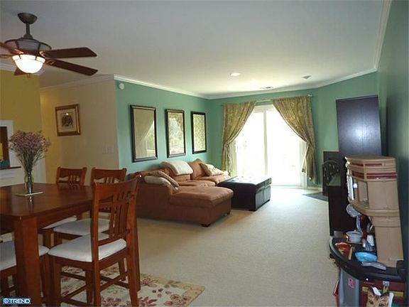 Situated between the community clubhouse and Village Park this second floor Society Hill Condo is ready for new owners. The foyer with tasteful ceramic tile flooring opens to the living room with crown molding, a corner wood-burning fireplace and sliders to the private balcony. An updated kitchen with oak cabinetry, additional shelving, pantry and ceramic tile flooring includes a pass-thru to the well appointed dining room with crown molding, ceiling fan and custom chair rail. A generously sized master bedroom features a private updated bath, an abundance of natural light, walk-in-closet with organizer and ceiling fan. The sun drenched second bedroom includes a ceiling fan and walk-in-closet with organizer. Across the hallway from the additional full bath is the included washer and dryer. Neutral berber carpeting throughout blends well with lighting and choice of paint colors. Whether you choose to enjoy the view from your balcony, visit the pool or take a stroll to Village Park you won't be disappointed!