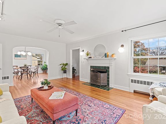 Classic West Asheville home in a super-convenient location with tons of curb appeal! Surprisingly spacious with four nice-sized bedrooms, one on the main level and three upstairs! So much original charm is still intact and there is amazing natural light throughout. Beautiful hardwood floors, charming kitchen with quartz countertops, tons of cabinetry and a breakfast nook. Large, light-filled living room with a gas fireplace opens to a full dining room and separate sunroom. The daylight basement is unfinished, but very usable, and has a bonus half bath; would be easy to finish to add more square footage. The backyard is fenced and massive — with plenty of level yard for pets and play, a big stone patio for entertaining, and a nice carport. This home oozes with character and is a must-see!