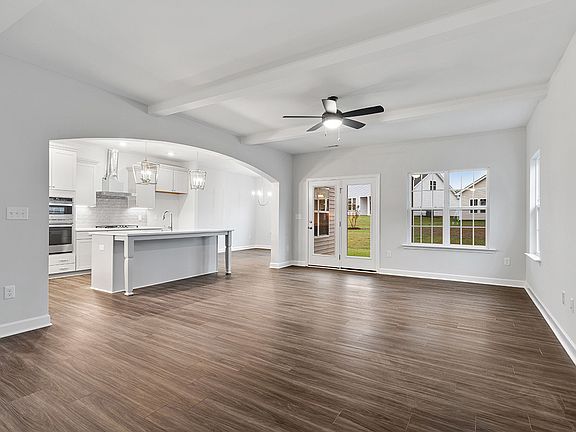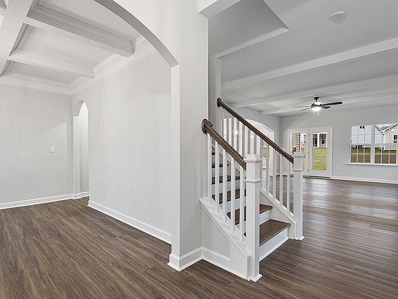 Get ready to say WOW! This three-bedroom, two-and-one-half bathroom has a primary bedroom on the first floor!! Upon entrance, you will find a formal dining room with a gorgeous, coffered ceiling. Make your way through the arched openings and you will find a truly spectacular kitchen with TONS of counter space, including a tremendous island!! The kitchen opens to the great room which comes included with beams on the ceiling! The eat-in area is a great spot for gathering and is just off the kitchen making dinner parties a breeze!! You will also find a 10x16 covered porch just off of the family room--making this a perfect spot to sip on your morning coffee! Tucked away in its own little oasis, you will find the primary bedroom. The primary has a tray ceiling and a fantastic bathroom with dual vanities, a water closet, a linen closet, and a HUGE oversized walk-in tiled shower. Let's not forget the spacious walk-in closet! On the second floor, there are two additional bedrooms with walk-in closets, a loft, and a floored storage area.