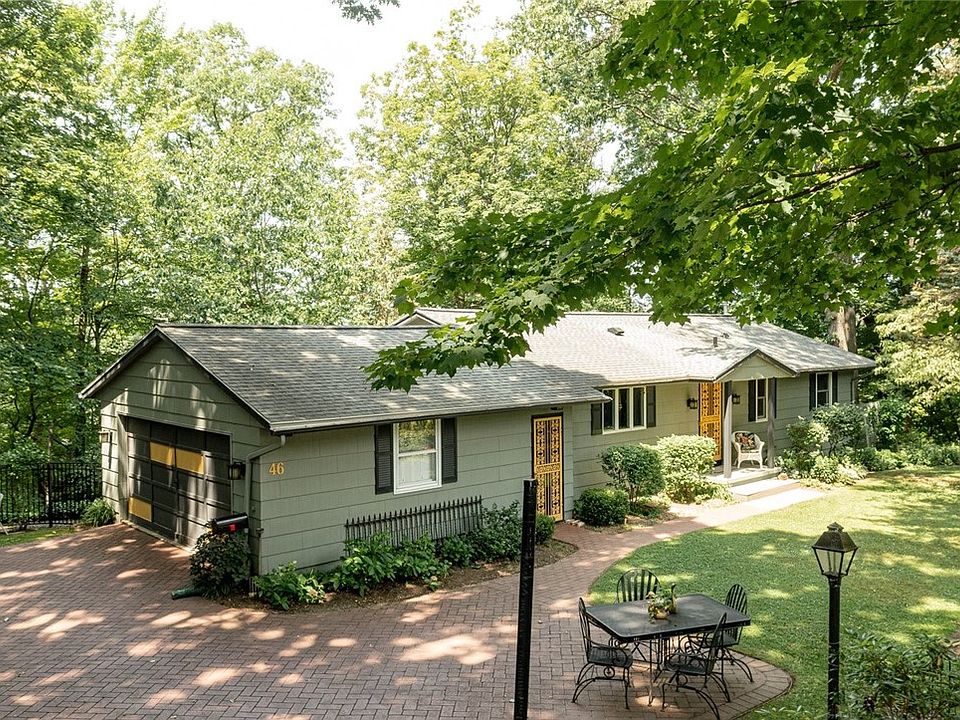 If you are looking for a special & unique home, this is the one. Nestled in the woods this property offers tons of privacy, quiet location & beautiful Sunsets! The home is a non-traditional Ranch with a fully finished lower level PLUS a walk-out basement below– 2392 square feet on two levels per apprasier.. Lovingly maintained by the same family for over 50 years! The main level has 2 bedrooms and 1 full bath. Beautiful open concept living dining and kitchen. Wide open spaces with huge windows overlooking the woods. The kitchen has cherry cabinetry, hardwood floors, tile backsplash, recessed lighting & large island with breakfast bar. The lower level has a family room overlooking the woods, 2 bedrooms and 1 full bath. There is also a laundry/utility room that serves as an office. There is a basement with walk-out to the backyard-has a huge storage room that could be converted to living space, loft–many possibilities. The property is an oasis at a dead-end street with beautiful gardens & a tucked away space perfect for relaxing and entertaining. Showings begin Thurs, August 3, 2023. Delayed negotiations until Monday, August 7, 2023 at 1pm.