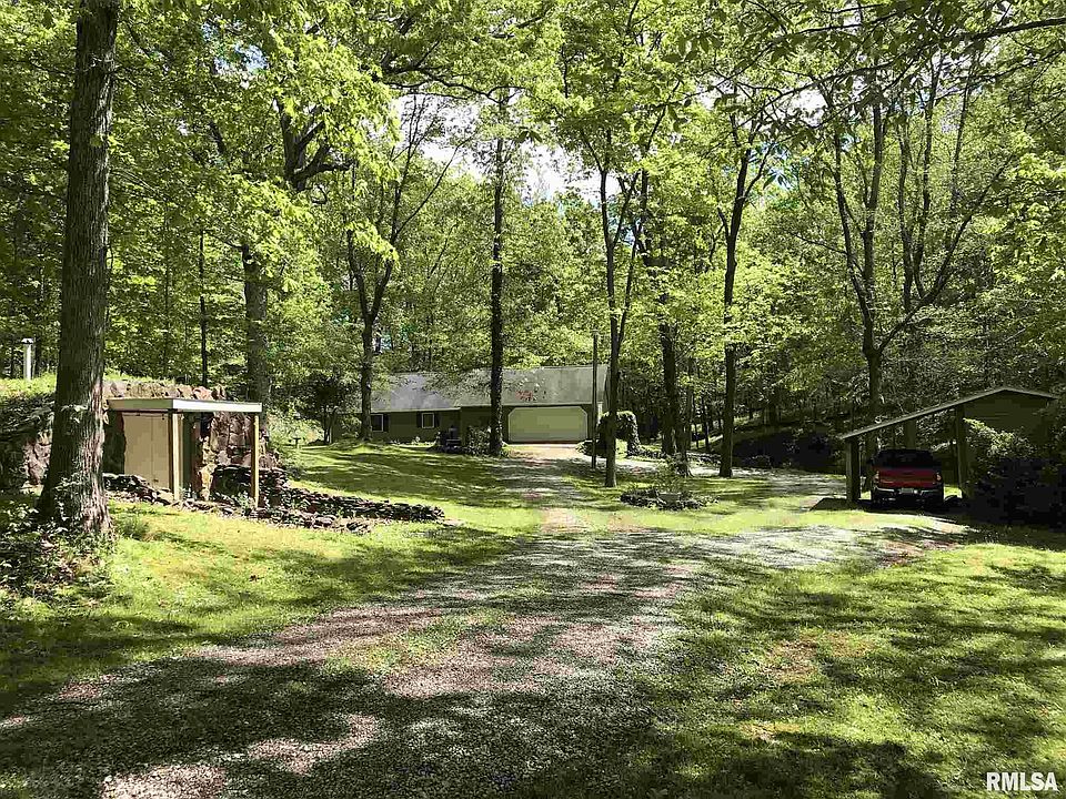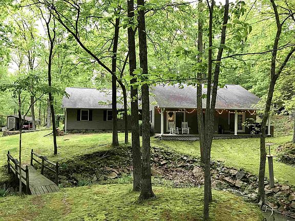 Follow the winding drive to your own private retreat. Not a neighbor in sight! Sit back and relax because this owner has practically remodeled the entire home. They have installed dark stained engineered bamboo floors throughout, created a new open concept kitchen with GE graphite appliances, sparkling white Shaker style cabinets and ceramic tile backsplash. The Master Bath has also been updated and all the light fixtures in the house have been replaced. There is a wood burning fireplace in the living room, two good size bedrooms and an office. There is a covered "Rocking Chair" porch all across the rear allowing you to enjoy the view of the meandering creek and the wooded hills. There is a fire pit, a small foot bridge and walking paths that cover most of the five acres. In addition to the attached 1.5 car garage there is a carport with an attached shed and a quaint storm shelter/ wine cellar tucked into the hillside. (Bedroom 2 is "L" shaped).