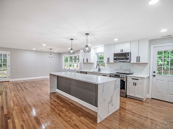 Back on the Market with a Stunning New Backyard! Welcome to 46 Birchwood Circle, a beautifully renovated home nestled in a highly sought-after Bedford, NH neighborhood just minutes from major highways. As you step inside, you're greeted by gleaming hardwood floors and an abundance of stylish updates. The first floor features an inviting open-concept living area and eat-in kitchen. The kitchen is a chef's dream, boasting a generous 10-foot island, brand new cabinetry, quartz countertops, stainless steel appliances, and a chic backsplash. The spacious living room is perfect for relaxation, complete with a cozy wood-burning fireplace. Adjacent to the living room is an enclosed three-season room, ideal for enjoying morning coffee or soaking in the beauty of nature. The first floor also includes three well-appointed bedrooms, highlighted by a main suite with an updated private bathroom. Both bathrooms have been completely transformed with modern floors, elegant vanities, and stylish tiles. Downstairs, the finished basement provides an excellent space for entertaining guests or family fun. Outside, you'll find a vast backyard—perfect for gatherings, summer cookouts, or letting your furry friends roam free! Don’t miss your chance to make this exceptional home your own!