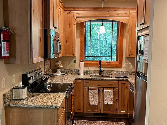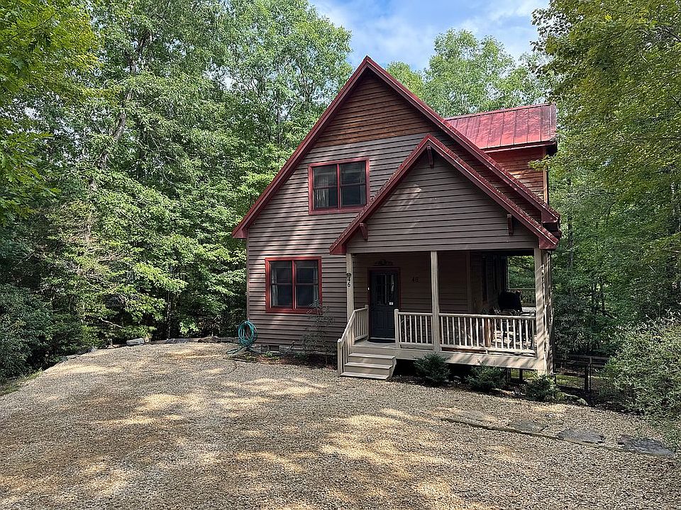 Rarely available Cantrell Mountain Cabin. Located amongst 8 similar cabins on 10 acres, this cabin feels secluded yet is a quick drive to town. Designed with spacious porches and two living areas, this is a perfect home for those who love nature and an ideal rental property. Situated on 0.7 acre with fenced back yard. Separate "teeny" cabin ideal for studio or workshop.