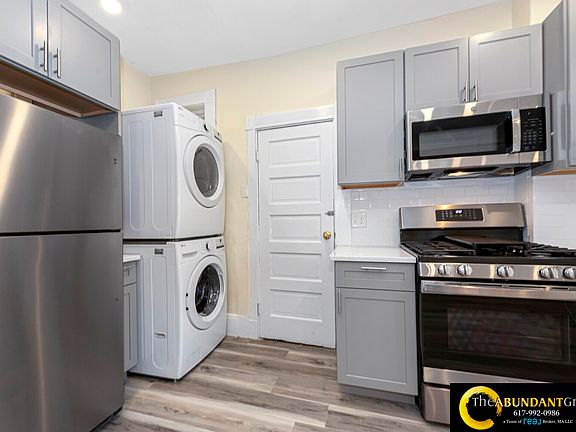Newly renovated 3-bed, 1-bath unit in Oak Square boasts hardwood floors, stainless steel appliances, and high-end finishes throughout. It includes an in-unit washer/dryer and a covered porch. Rent is $3,850/month, with first and last month s rent due at move-in (no security deposit). Available September 1, and pets are welcome. Rent covers water, sewer, and snow removal. The location offers easy access to public transportation, shopping, parks, walking/jogging trails, medical facilities, and highways. note: there is a one month broker fee.