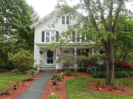 The Buyers' home did not sell; they have to walk away. NOW'S YOUR CHANCE! Filled to the brim with beautiful details of elaborate trim, carvings and curved railings, but what will inspire you most about this home is how comfortable you'll feel the moment you walk in. 2633 sq.ft of living area you wouldn't guess from the curb! A bright cheerful kitchen with Viking Range and sunny breakfast room suggest lingering. Perennials splash brilliant color outside every window and at every turn, and the stonework built into the landscaping is truly wonderful. Large, bright and cheerful bedrooms some w/ views of the town common through floor to ceiling windows. The front porch gracefully curves around the front of the house - double casement floor-to-ceiling windows double as doors for stepping out from the dining room. Fabulous walk-out basement with bath adds great functionality, and includes both comfortable living space with a fireplace, plus a workshop area. Magnificent - Call today!!