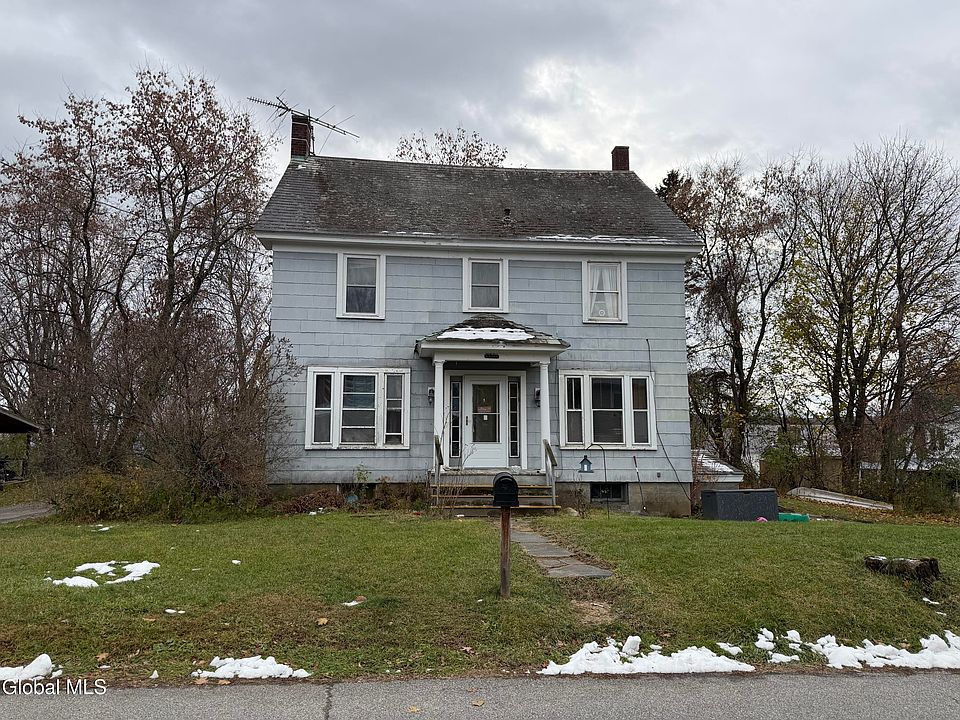 Nice 4 nice size bedroom, 1 bath colonial style home, large living room with cozy fireplace, full basement which includes a garage area, covered front porch. Nice yard. Located close to Lake Champlain, bridge to Vermont and northway. Moriah School District. Public water and sewer