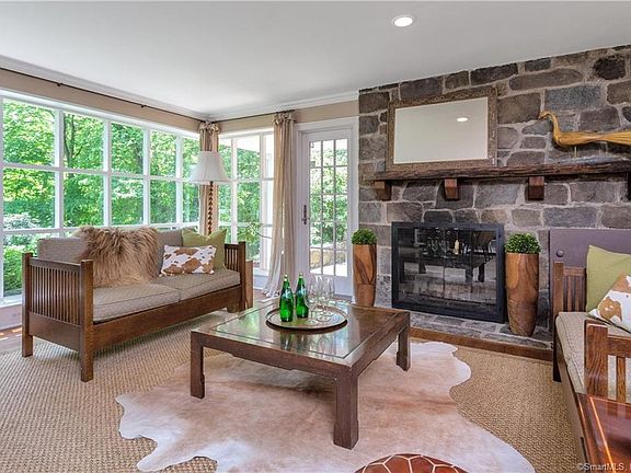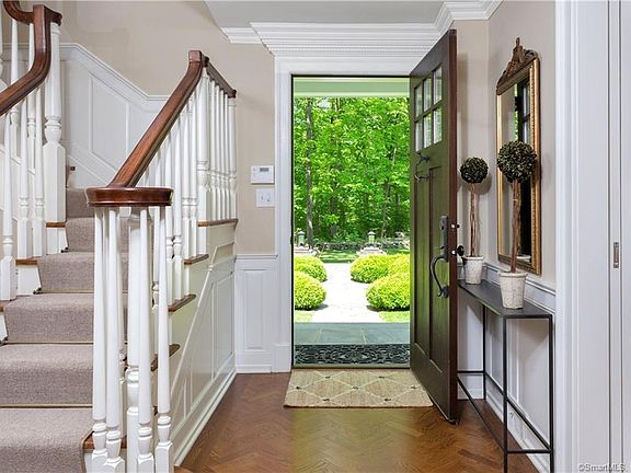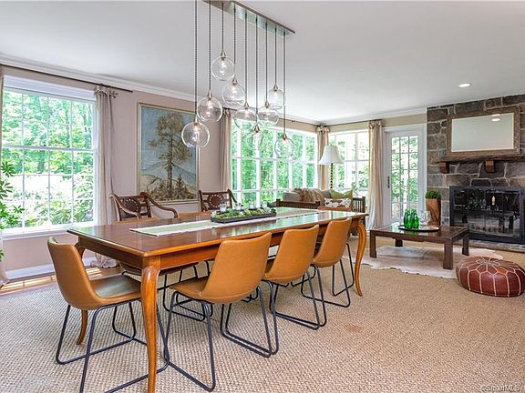 North Stamford Masterpiece. Homes of this stature and quality do not come along very often! This magnificent and private five-bedroom, six-bath colonial is situated on just over four wooded, park-like acres conveniently located across from the 80-acre Bartlett Arboretum and abuts the Stamford Museum and Nature Center. Enjoy Sunday morning walks to the popular Farmer's Market and dine al freso to the music drifting over from the Arboretum on Sunday evenings. Superbly updated gourmet eat-in kitchen, wet bar and wine cooler, featuring a generous walk-in pantry, fireplace and French doors out to the dining terrace overlooking the pool. The over-sized formal dining room features a stone fireplace and living room for ease of entertainment with a wall of windows with abundant views of nature. Guest bedroom and full bath on the main level with separate entrance and access to the secluded brick patio. Retreat at the end of the day to the private main bedroom suite with large living space and beautiful spa-like bathroom. Additional three bedrooms with two updated full baths and office complete the upper level. The cottage/party barn could be a separate home office or art studio. Lush professionally landscaped grounds and potager garden with raised vegetable beds. Completely fenced-in heated Gunite pool has a shady pergola and custom stone fireplace, complete with outdoor shower. Only a mile to the Merritt Parkway and a stone's throw to neighboring New Canaan and Pound Ridge.