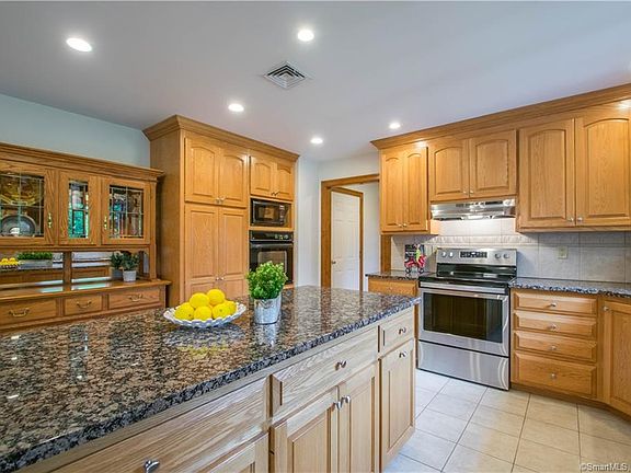 This is one floor living at its finest! Welcome to 46 Brownstone, a custom built ranch style home meticulously maintained by one owner. This beauty is located in one of Southingtons most sought after neighborhoods, on a lovely cul-de-sac on an acre of land. No expense or details spared here. You will love flexible floor plan which features gleaming hardwood, recessed lighting, 6 paneled doors, high ceilings, new light fixtures & is bathed in natural sun throughout thanks to the abundance of Anderson windows. An open concept lends itself to carefree entertaining. From the spacious living room with fireplace to the eat-in kitchen which is every cooks dream and features tons of cabinetry, granite counters, large center island w/ breakfast bar & storage, NEW stainless steel stove, refrigerator and dishwasher. Head outside to the maintenance free covered deck w/ ceiling fan & enjoy dining al fresco while overlooking your backyard. The vast Master Suite is peaceful & offers a walk in closet, full en suite bath w/ whirlpool tub & double sink. The huge, walk out lower level offers expansion opportunities w/ no lally columns to get in your way, cold cellar, propane hookups, duct work in place for central AC & interior access points. The walk up attic offers plenty of storage or can be finished as well! No shortage of parking in the garage which can fit 3 cars comfortably with one bay being "double deep". Enjoy the central AC, new hot h2o heater & water filtration system! A must see!