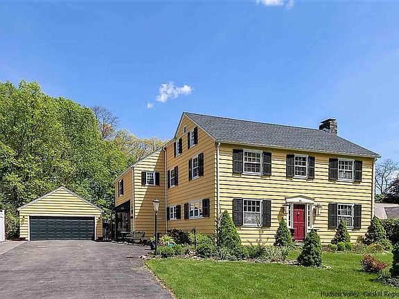 CLASSIC KINGSTON- Distinctive and impressively gracious clapboard Colonial nestled on a most picturesque street within easy walking distance to the historic uptown Stockade district shops and restaurants. The over ½ acre site provides a scenic and super desirable rear yard with privacy and soothing country ambiance. The generously proportioned interior has been stylishly and smartly re-imagined and features a new custom kitchen, cozy wood burning fireplace, grand formal dining room (possible main level bedroom) and a terrific stone floored screened room for outdoor living. Truly an urban oasis inviting easy entertaining and a casually comfortable lifestyle. Walk to the famous Kingston Farmer's Market, NYC bus, pubs, galleries, music venues and dining all within blocks. Or, retreat to the bucolic screened room and yard out the back door. BEST OF BOTH WORLDS exist at this house! please note; pewter light fixture in the upstairs sitting room, pewter fixture over the kitchen table, oversized fixture in the downstairs front sitting room and the two pairs of wall sconces in the living room and dining room are not included in the offering for sale. Seller will install purchaser's replacement fixtures.