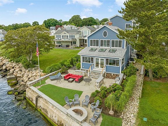 This is it! Just a seabreeze from Rocky Point Park, Burnett Road flanks one of the most alluring American coastlines. Nautical splendor outstretches every sightline, from the panorama of Conimicut and Nayatt Lighthouses, to Rumstick and Poppasquash Points, to the Mount Hope Bridge. Hugging Narragansett Bay, the exterior is meticulously conceived to ensure full waterfront indulgence. Traverse the manicured landscaping amid rainforest-inspired privacy, from the hot tub abutting the custom-made waterfall, to the outdoor entertaining patio, to the mesmerizing firepit. Hop in a kayak or enjoy the boat mooring rights! Not to be outdone, the customized tri-level interior consists of new construction with high-end finishes that did not miss one detail. The first level includes a majestic fireplace, gourmet kitchen with two islands, coffee bar, and upscale SubZero/Wolf appliances. The second level boasts three bedrooms and two bonus areas. The incomparable primary bedroom, with private-staircase access, showcases panoramic water views/sunsets/sunrises, a luxurious outside-facing steam shower, walk-in closet and vaulted wood-beamed ceilings. The top level is comprised of an enormous windowed space and private deck, offering the same expansive vistas. Transform life through the turn of the key of this seaside sanctuary! This property is also available for a one year rental term. See MLS #1371039 for additional details!