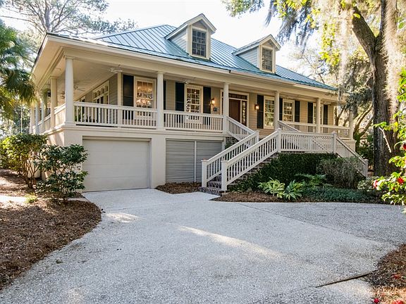 Traditional Lowcountry architecture with gracious wrap-around porches offering stunning views on one of the most desired streets in Sea Pines. This beautiful 5 BR, 4.5 BA home with pool & private boat dock features a sep. DR, kitchen/family room with stone fireplace, wet bar, wine cooler and heart of pine floors. First floor master has his and her closets, separate shower & tub, double vanity and opens to outside decks. Easy access to the Intracoastal waterway, gorgeous moss laden oaks, and Lowcountry living at its finest are some of many reasons this home is a rare find!