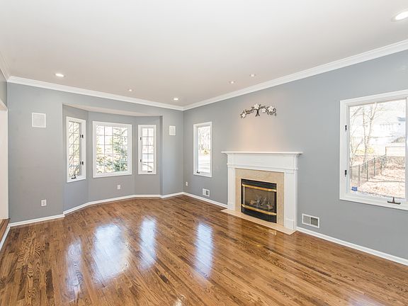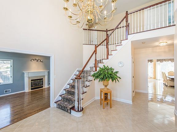 Stunning Updated Center Hall Colonial. Sunlight Galore! 4300+ sq.ft. of spacious, open, bright living space. Gourmet Kitchen featuring new granite counters & appliances, center island, breakfast bar. New Roof! Many upgrades! Freshly painted. 1st floor boasts fabulous layout. Grand 2 story foyer, huge office, comfortable family, elegant living & dining. High ceilings, custom woodwork, built-ins & custom trim, moldings & HW floors throughout. 2 Wet Bars, 3 Gas Fireplaces, French Doors. Large master w/ tray ceiling, sitting area, 2 walk ins & oversized bath + 4 addtl bdrms & 2 baths. Rear 2nd Staircase. Huge beautifully finished 2000 sq. ft bsmt bonus w/ recreation, exercise, full bath & au pair suite. 2-tiered custom deck & fenced in yard. Lovely lot w/ circular driveway on quiet Denville street+3 car garage.
