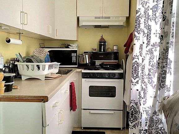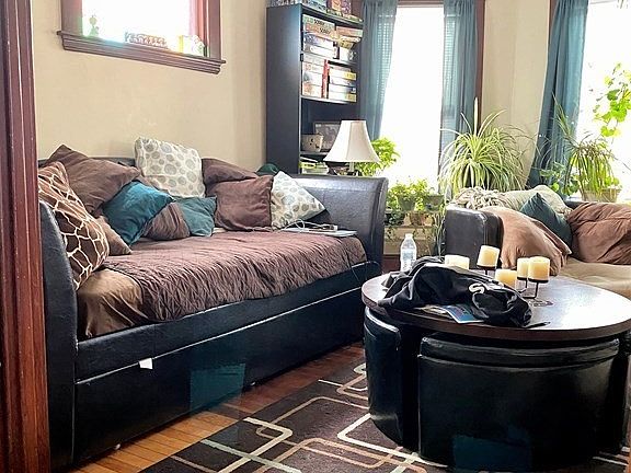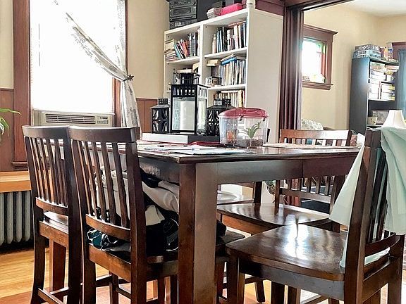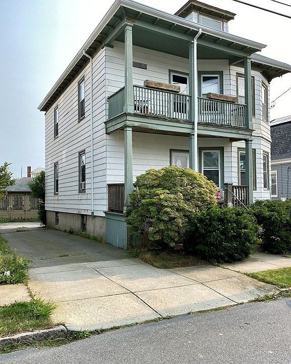 Spacious two family home with 4 Garage Spaces! First & second floor offer hard wood floors throughout Close to the pretty waterfront of Clark's Cove and West Beach. Second floor unit to be vacate at closing.Separate utilities. Great for an owner occupied property with additional income. If you're an investor the garages in the back could bring you extra income. Seller has ordered and will be replacing Garage doors. Low maintenance yard....